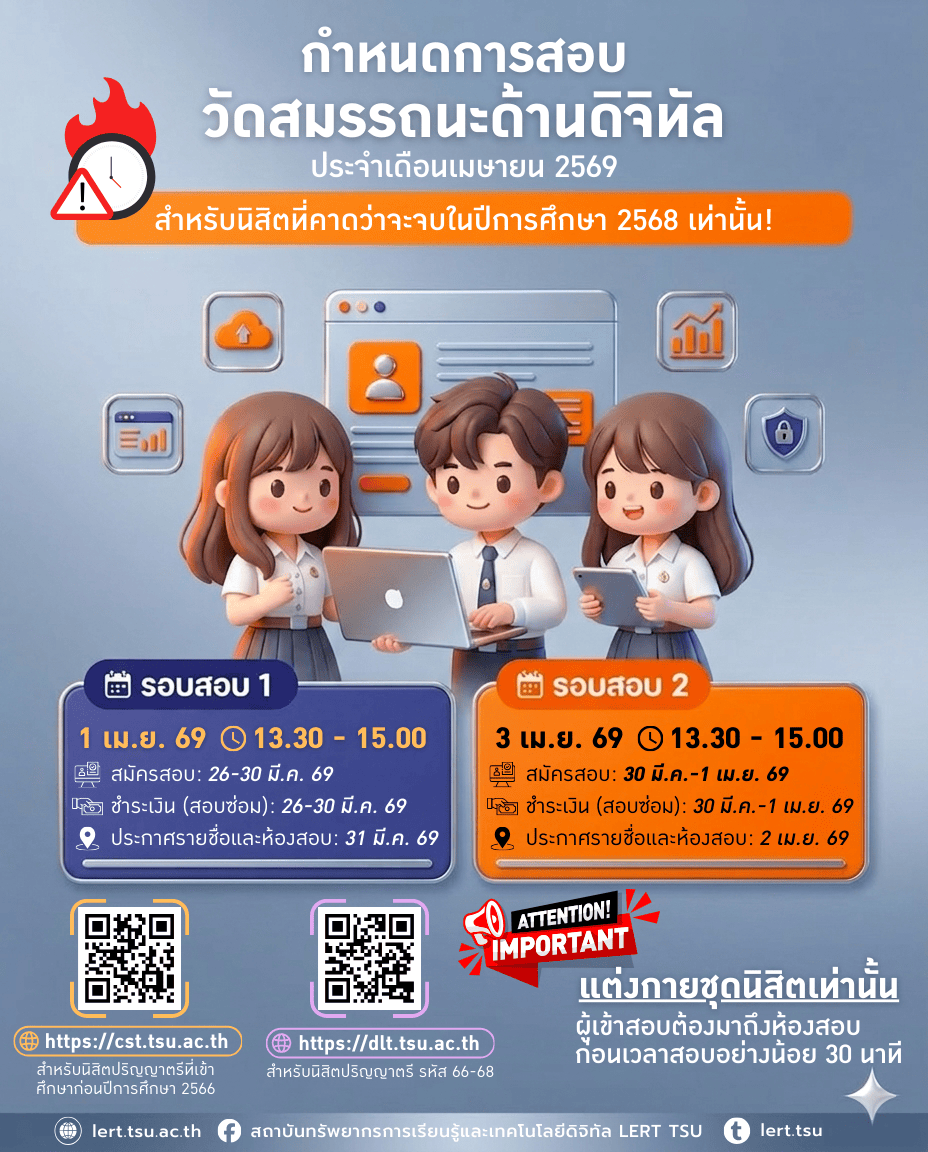 🗓️ กำหนดการสอบวัดทักษะคอมพิวเตอร์ ประจำเดือนเม.ย. 2569 ⭐️